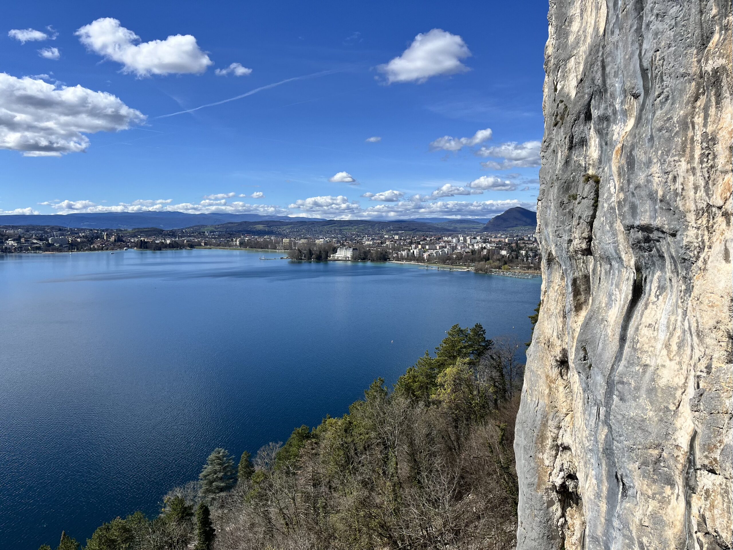 Comme pour le lac du Bourget, le lac d’Annecy est entourée de superbes falaises, avec un calcaire typique du massif des Bauges et des Aravis, souvent très compact et esthétique.