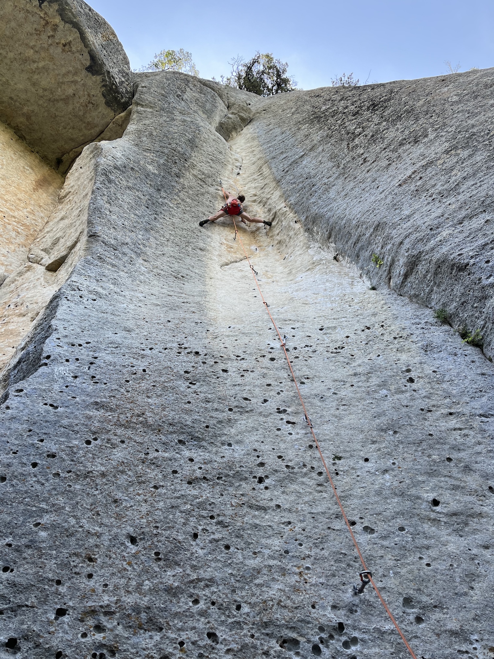 Seynes est un « four » : j’y grimpe chaque année entre décembre et février car c’est une falaise idéale pour l’hiver, avec un calcaire qui offre une variété de styles et de cotations exceptionnelle : dalle prisu, concrétions et trous dans le vertical, dévers sur colonnettes et immenses concrétions. La météo y est souvent clémente et la falaise abrite du vent, ce qui permet de grimper en t-shirt en hiver tant que le soleil est là.
