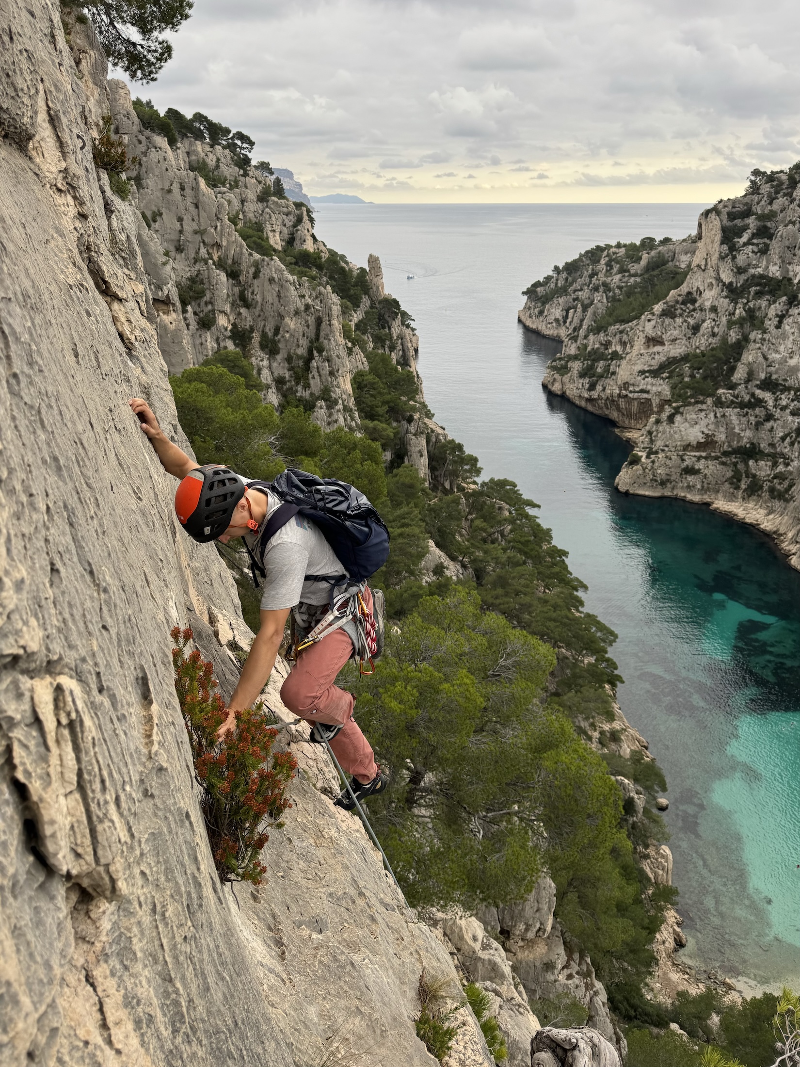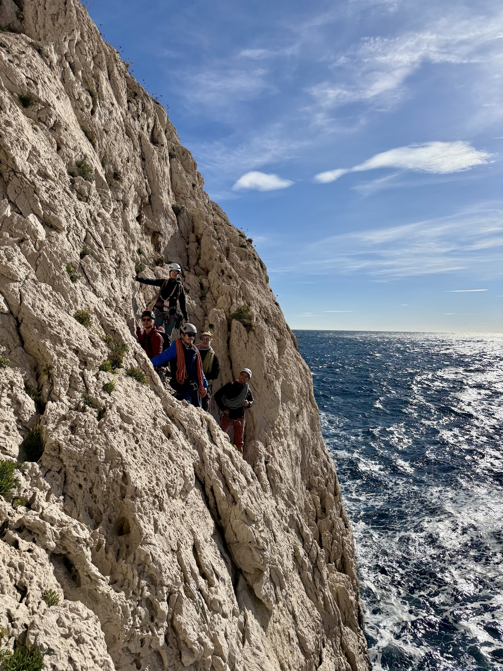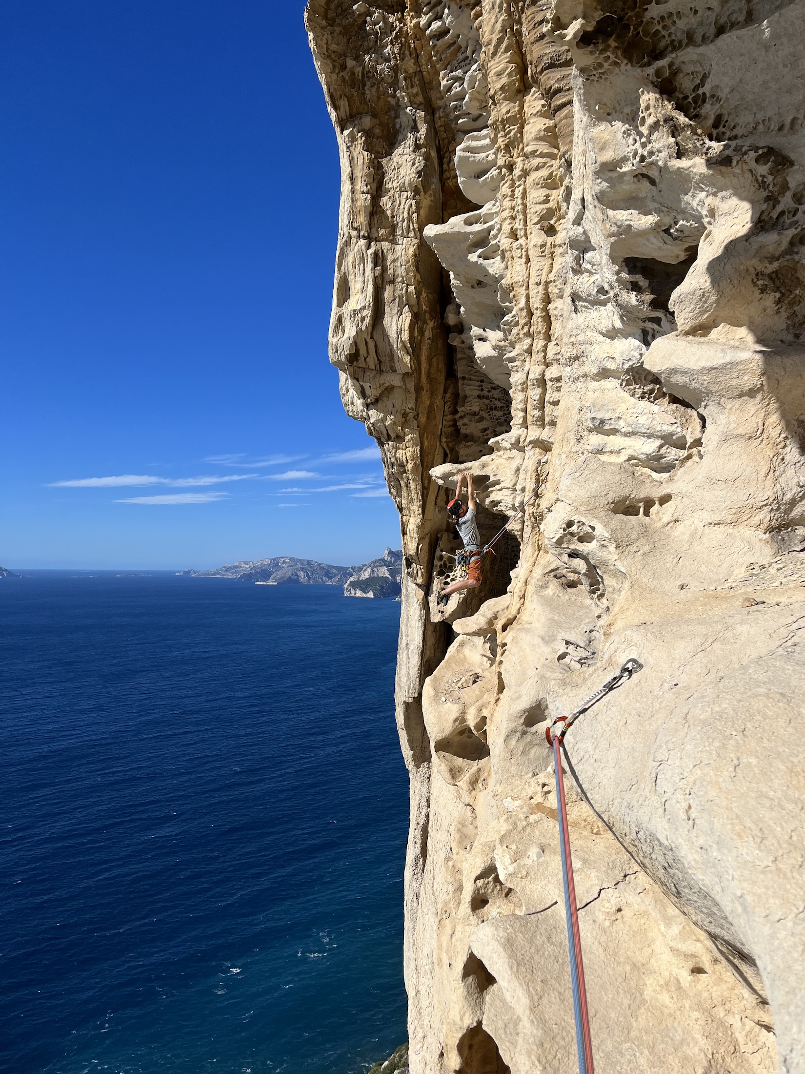 Les calanques de Marseille sont un immense regroupement de falaises dans un cadre paradisiaque. Des goudes jusqu’à Cap Canaille, on peut pratiquer de la voie, de la grande voie et même du psicobloc ! Les calanques se prêtent particulièrement bien à la grande voie dans tous les niveaux, car on peut grimper dans des niveaux très faciles dans un cadre magnifique, ce qui en fait une balade privilégiée dans ces paysages, loin des foules. Cap Canaille est le paradis de la grande voie « sportive », où on peut essayer des longueurs dures sans se faire peur grâce à un équipement particulièrement rapproché, avec un gaz impressionnant.