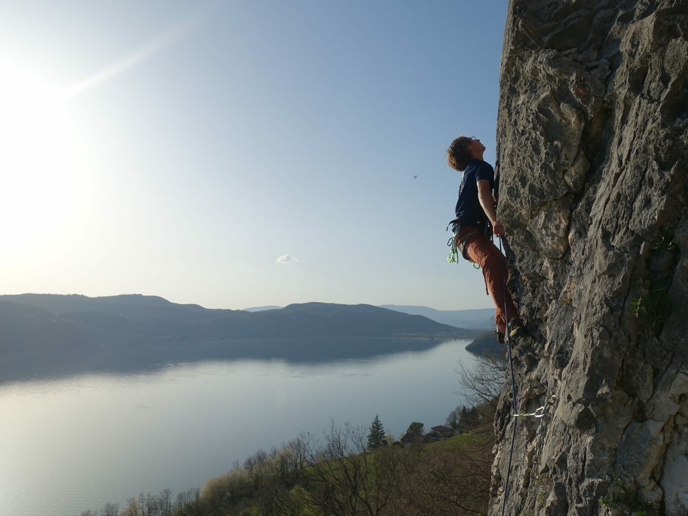 J’ai choisi de regrouper les nombreuses falaises qui surplombent le lac du Bourget : la Chambotte, Brison, la Pierre du Carre, Chindrieux, le col du Chat… Toutes ces falaises calcaires ont comme point commun le cadre magnifique, et certaines sont idéales pour l’initiation tandis que d’autres sont plus adaptées au perfectionnement. La Chambotte dispose de petites grandes voies assez courtes (3 à 4 longueurs) mais bien exigeantes ! Enfin, la via ferrata du col du Chat est la plus simple accessible de profiter du lac du Bourget avec une ambiance de verticalité.