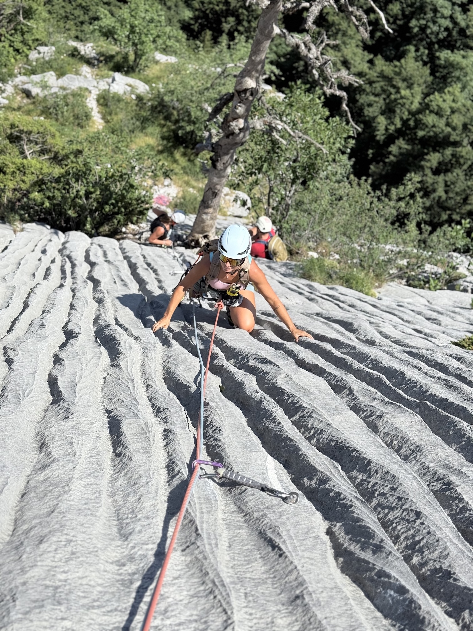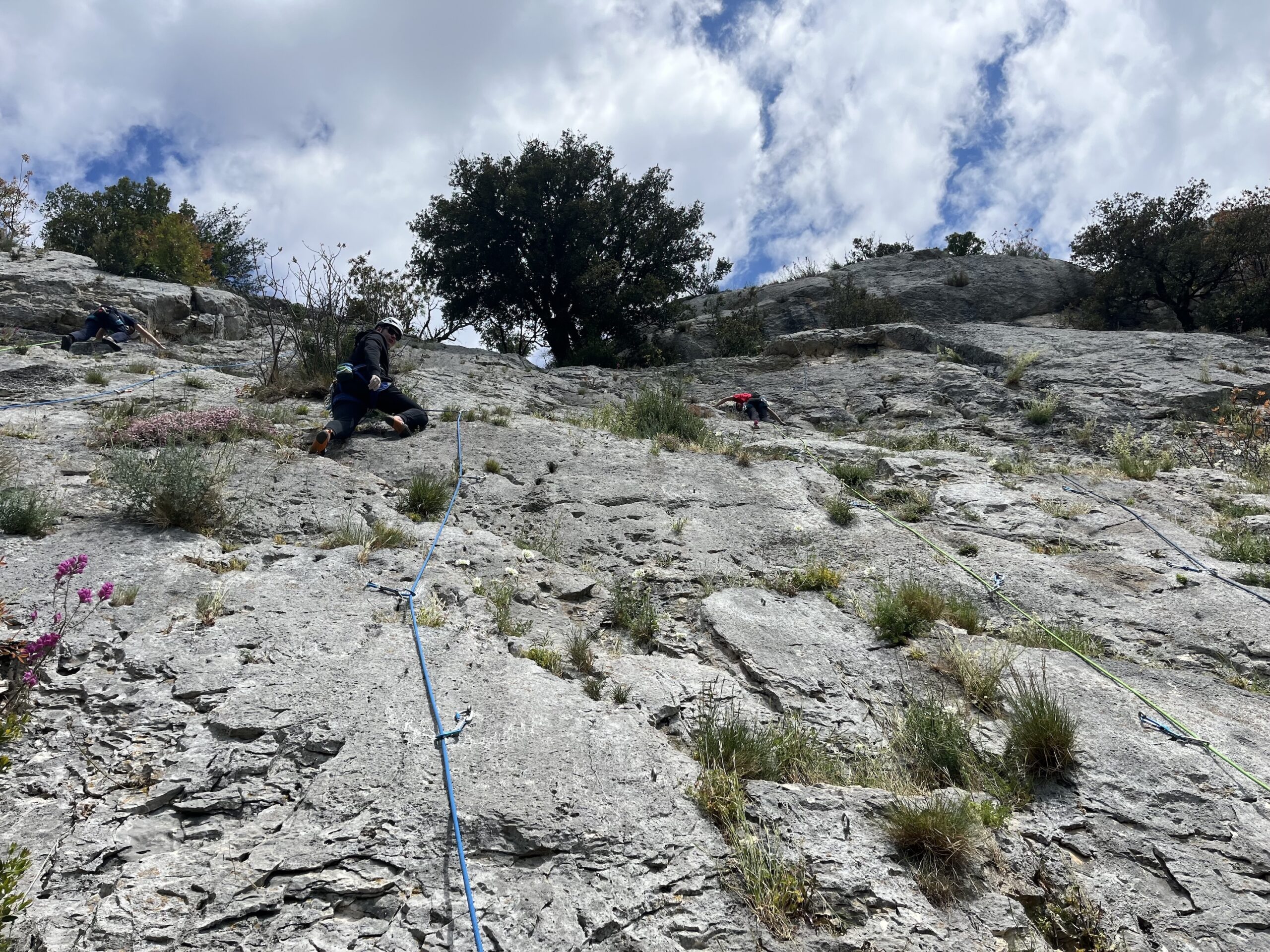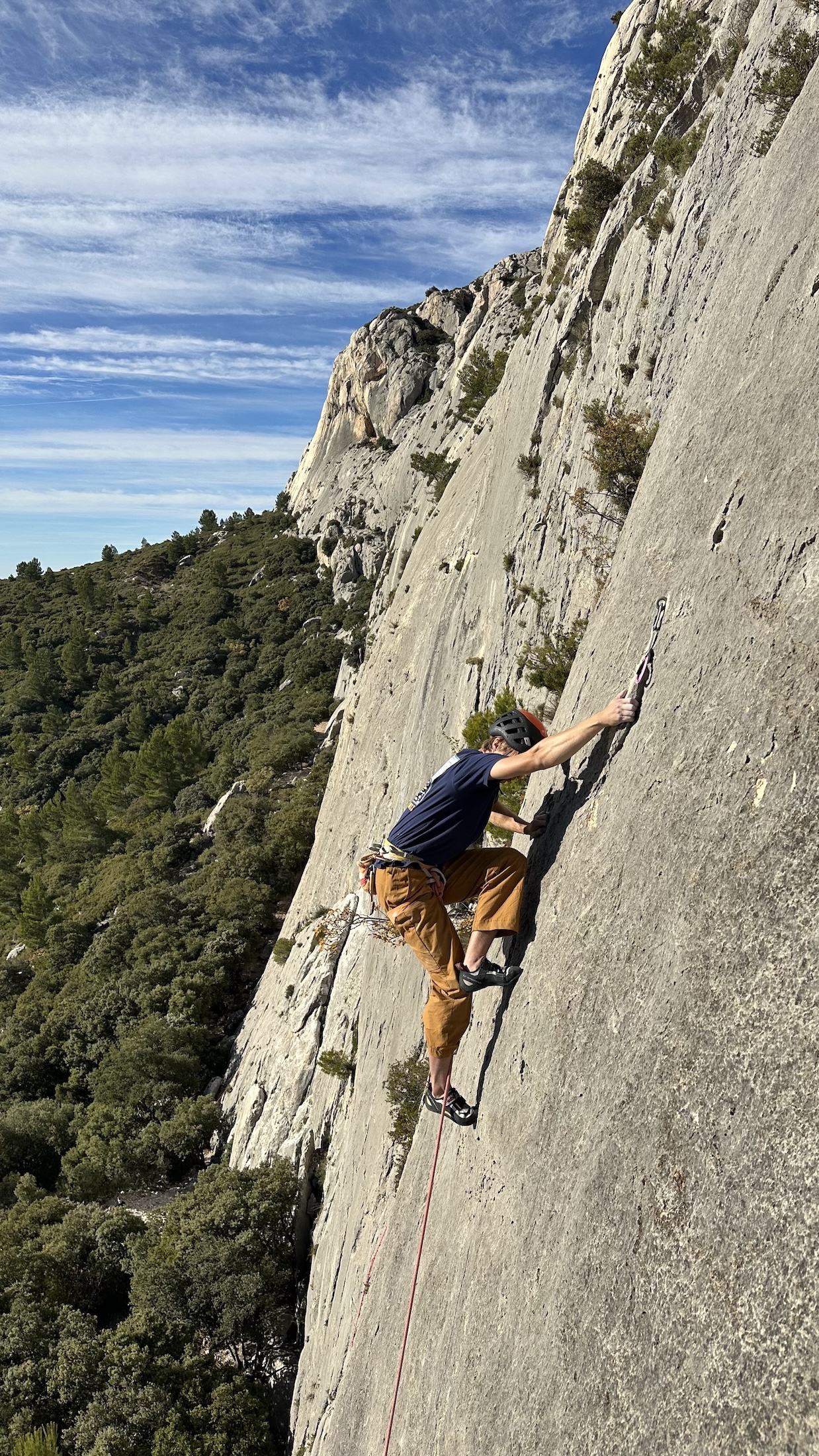 La Sainte-Victoire, a proximité d’Aix-en-Provence, est un immense terrain de jeu pour la voie et la grande voie. Elle propose des dalles grises d’une qualité exceptionnelle. La grande majorité des voies sont de la dalle mais en fouillant on peut trouver quelques belles voies déversantes, dans un rocher tout aussi beau. En grande voie, on peut s’offrir des itinéraires d’ampleur, de 100 à 400m, sans dépasser le 6a !